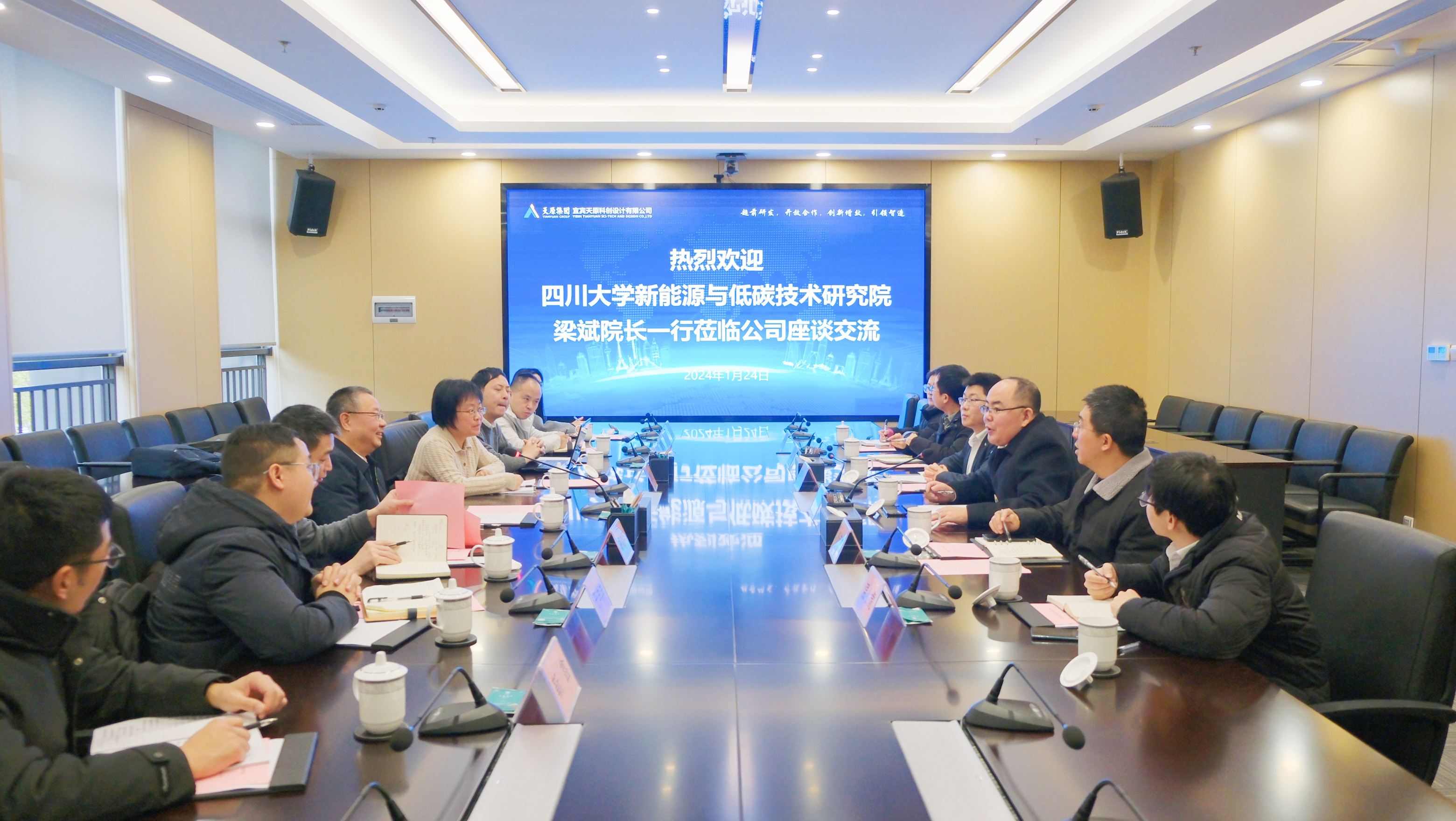 1月24日,四川大學(xué)新能源與低碳技術(shù)研究院院長(cháng)梁斌一行到天原集團座談交流。天原集團黨委委員、副總經(jīng)理徐慧遠陪同。